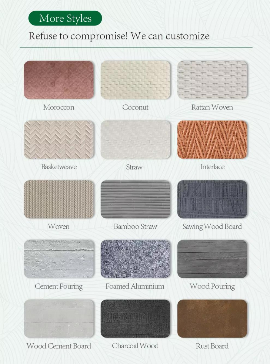 Mẫu mã đa dạng: Từ vân xi măng, đá granite đến họa tiết kẻ sợi, dễ dàng phối hợp với nhiều phong cách thiết kế từ hoang dại tự nhiên đến sang trọng hiện đại.